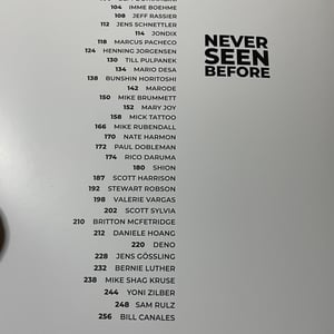 50名の世界で活躍するタトゥーアーティストによるソーシャルメディア、インターネットでは見ることが出来ない作品、下絵、フラッシュ、昔の写真等 が掲載された本になります。